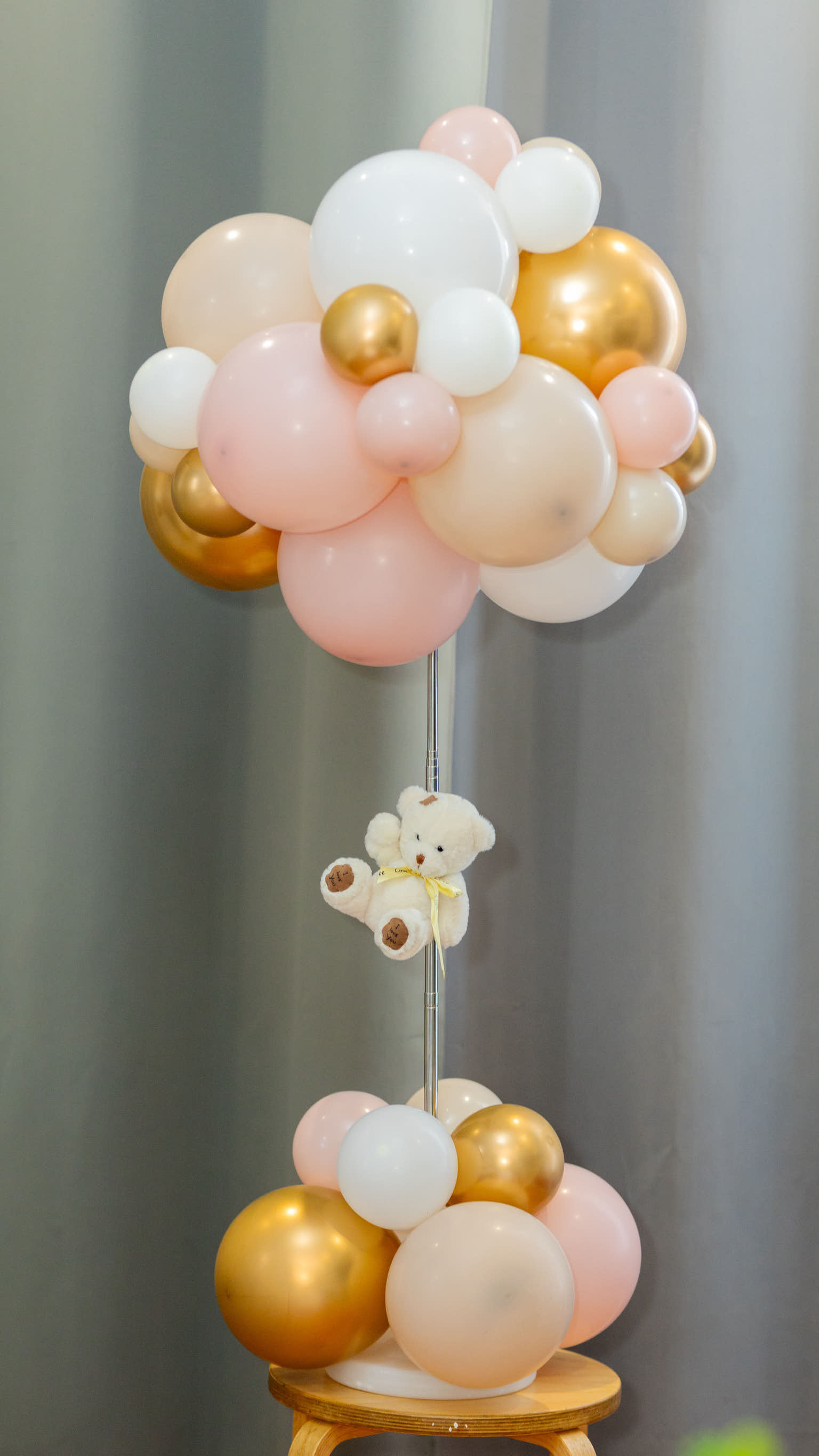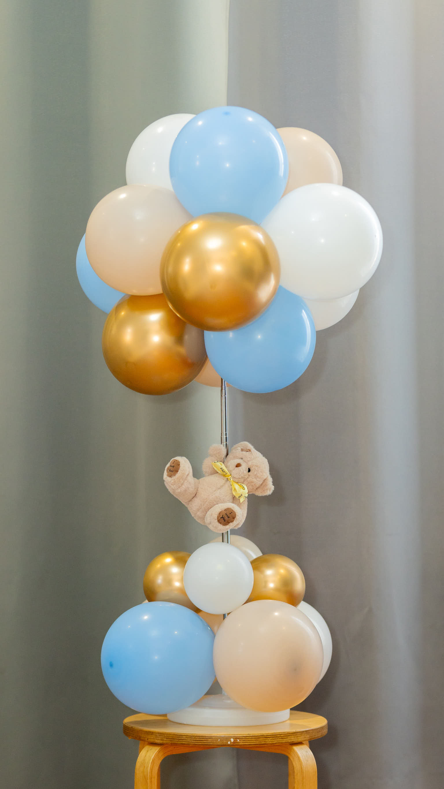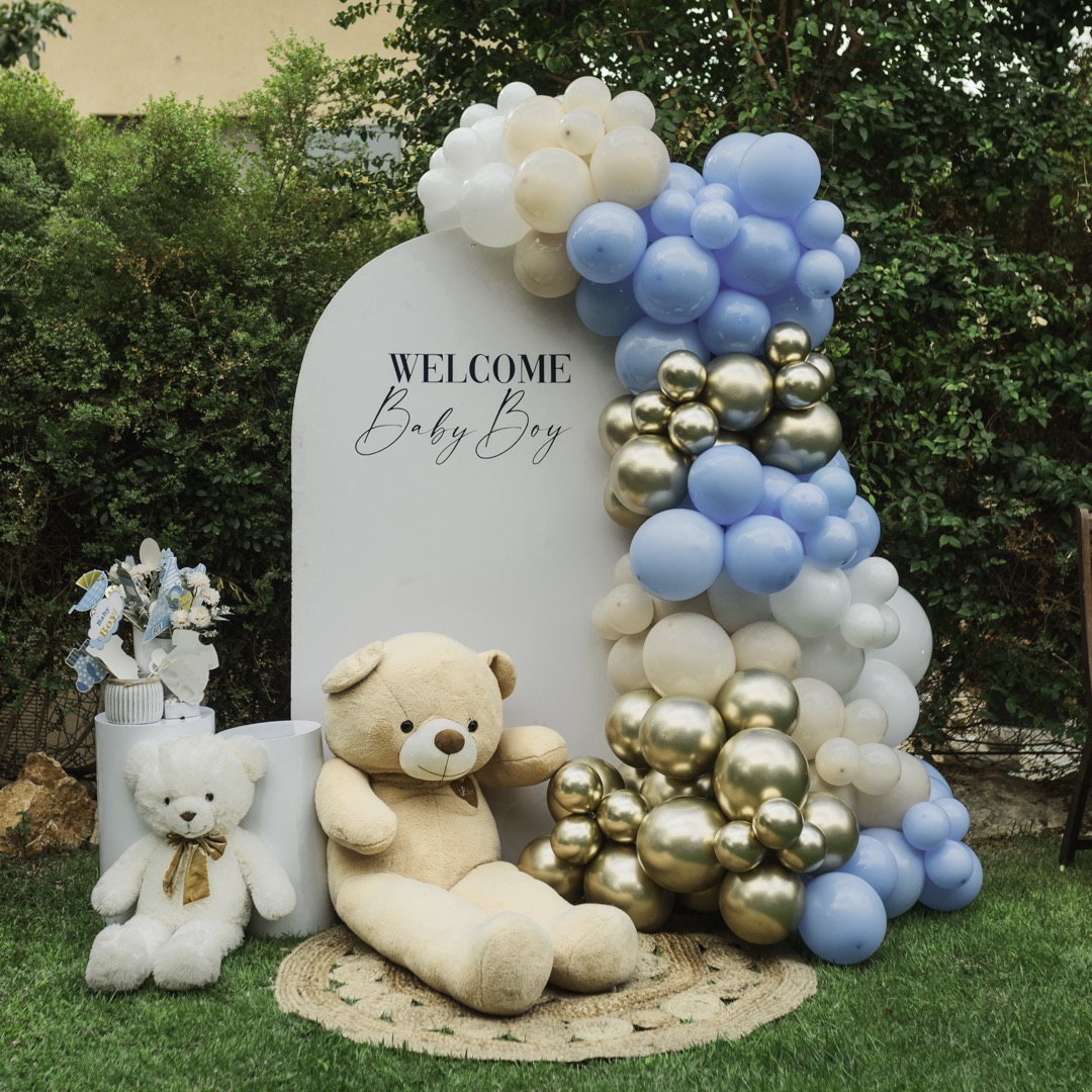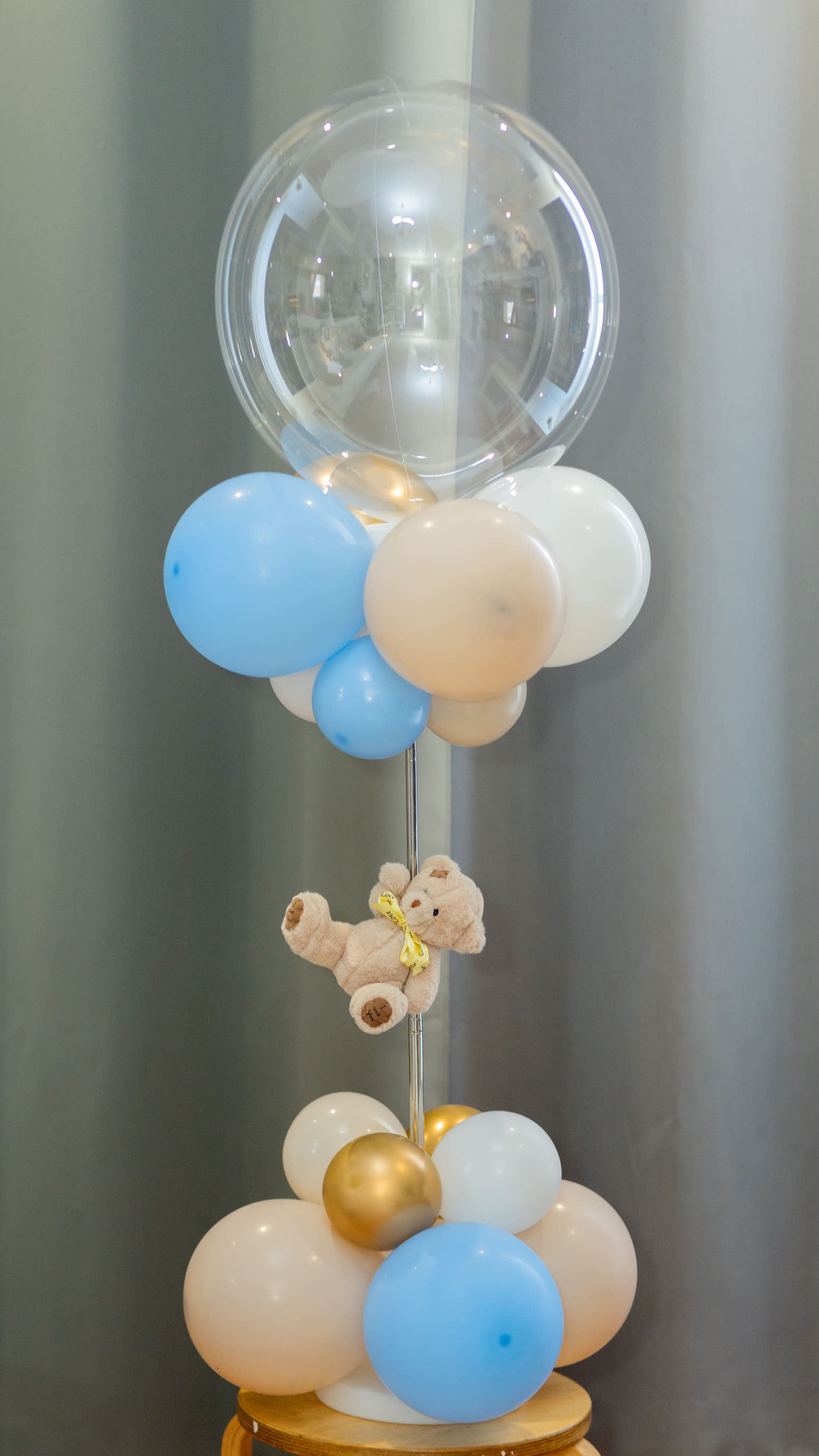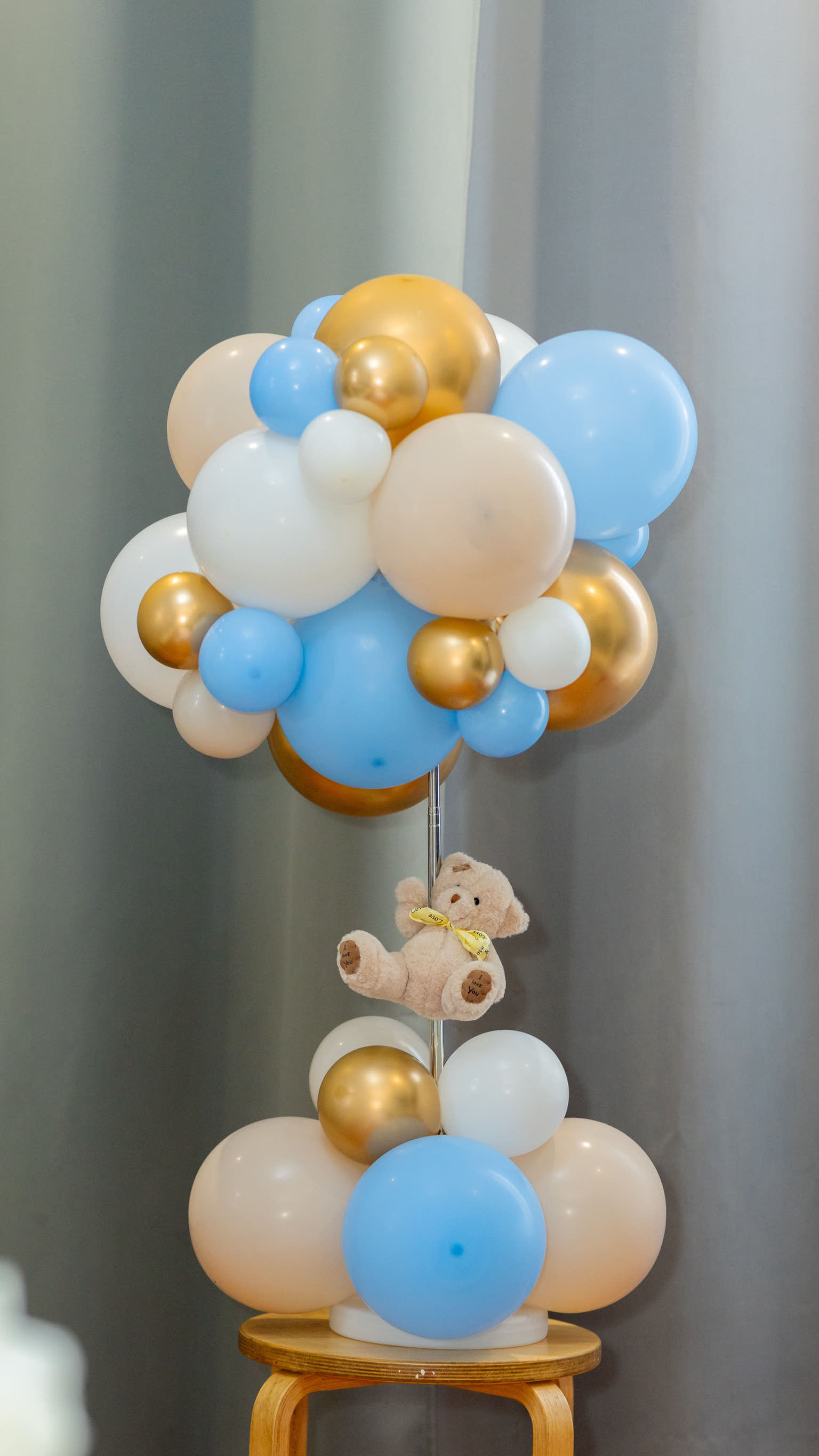עיצוב בלונים עדין ומיוחד לאירוע ברית או בריתה. ניתן להתאם גם לאירועי יום הולדת או מסיבת גילוי מין