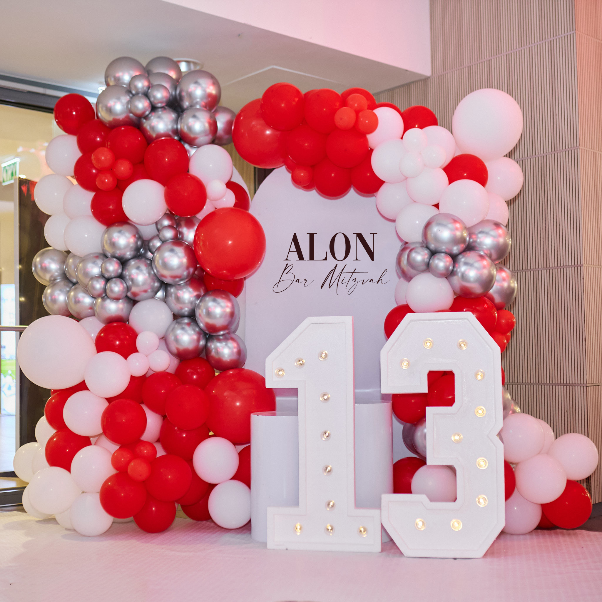קיר בלונים מושלם לאירועי בר או בת מצווה, מגוון רחב של עיצובים, וצבעים, ואביזרים.